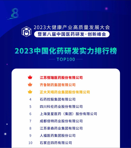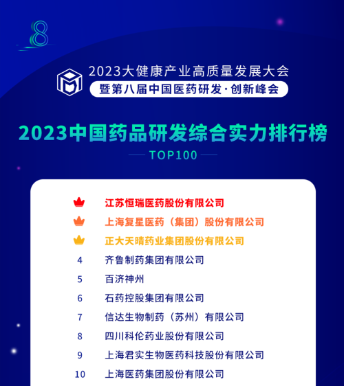 由药智网、中国药业杂志社主办的2023大健康产业高质量发展大会暨第八届中国医药研发•创新峰会于6月16日开幕,会上发布了《2023中国药品研发实力排行榜》系列榜单,PA电子医药凭借深厚的创新研发实力再创辉煌:荣登《2023中国药品研发综合实力排行榜TOP100》榜首、《2023中国化药研发实力排行榜TOP100》榜首。值得一提的是,今年是PA电子医药连续第6年入选《中国药品研发综合实力排行榜》榜首。