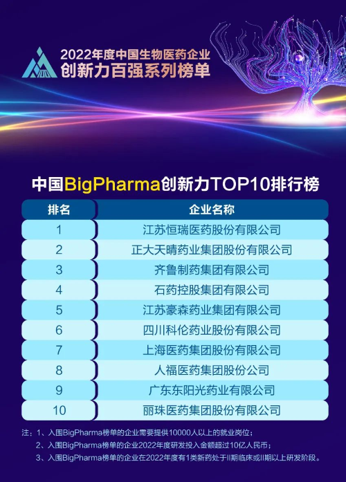 同日,2023米思会(中国医药健康产业共生大会)发布“2022年度中国生物医药企业创新力百强系列榜单”,PA电子医药再蝉联“中国BigPharma创新力TOP10”榜首。该榜单自2021年启动评选以来,PA电子医药稳居榜首。