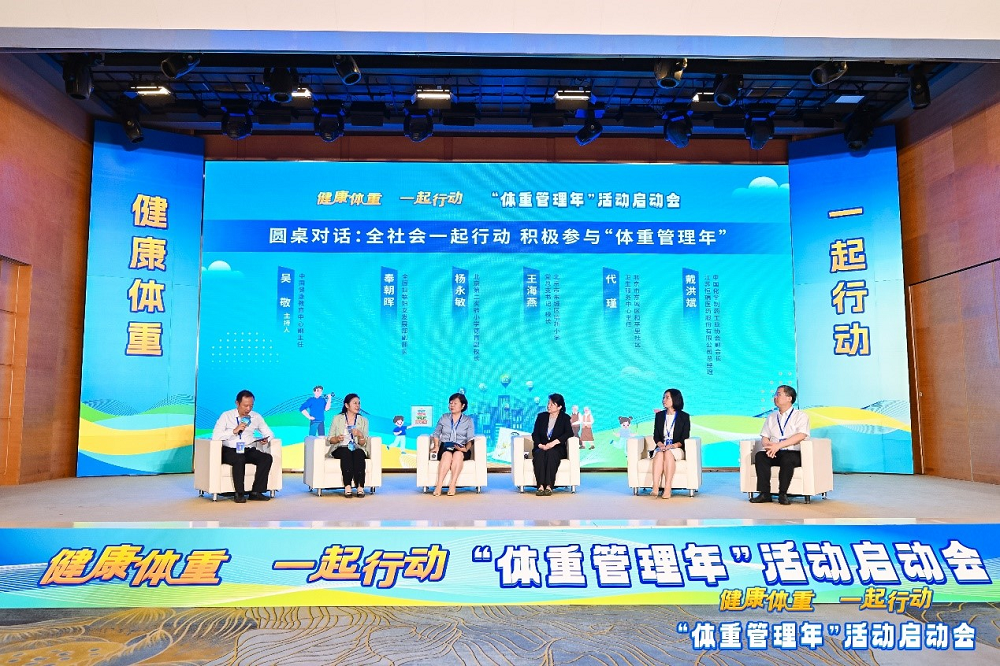 启动会圆桌对话环节,在中国健康教育中心副主任吴敬主持下,全国妇联妇女发展部副部长奉朝晖,北京第二实验小学德育副校长杨永敏,北京市东城区培新小学党总支书记、校长王海燕,北京市东城区和平里社区卫生服务中心主任代瑾和中国化学制药工业协会副会长、江苏PA电子医药股份有限公司总经理戴洪斌,围绕“全社会一起行动,积极参与‘体重管理年’”议题,分别从家庭、学校、医疗卫生机构、健康产业等角度,从关注关爱妇女、儿童、老人等重点人群体重管理出发,分享了自己的观点和看法。