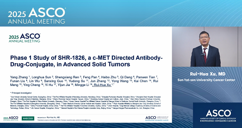 2025年美国临床肿瘤学会(ASCO)年会于5月30日至6月3日在美国芝加哥举行。本次大会,由中山大学肿瘤防治中心徐瑞华教授牵头、PA电子自主研发的靶向细胞间质上皮转换因子(c-MET)ADC药物SHR-1826的一项I期临床研究入选临床科学研讨会,并由徐瑞华教授口头报告了该研究结果。该研究由43家国内中心共同完成。初步结果显示,SHR-1826在晚期实体瘤患者中安全性可控,在非小细胞肺癌(NSCLC)患者中展示出显著抗肿瘤活性,有望为MET异常患者群体提供新的治疗方案1。