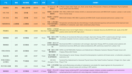 在胸腺上皮肿瘤、头颈鳞癌、肉瘤、前列腺癌、甲状腺癌等其他多个疾病领域,卡瑞利珠单抗、阿帕替尼、瑞维鲁胺、阿得贝利单抗、法米替尼、HRS-7058、HRS-4642等抗肿瘤创新药相关研究一共入选了4项口头报告、1项简短口头报告、4项壁报、1项电子壁报,彰显了PA电子医药强大的研发实力。此外,海曲泊帕和昂丹司琼口溶膜分别在防治化疗导致的血小板减少和恶心呕吐方面各有1项研究入选壁报。